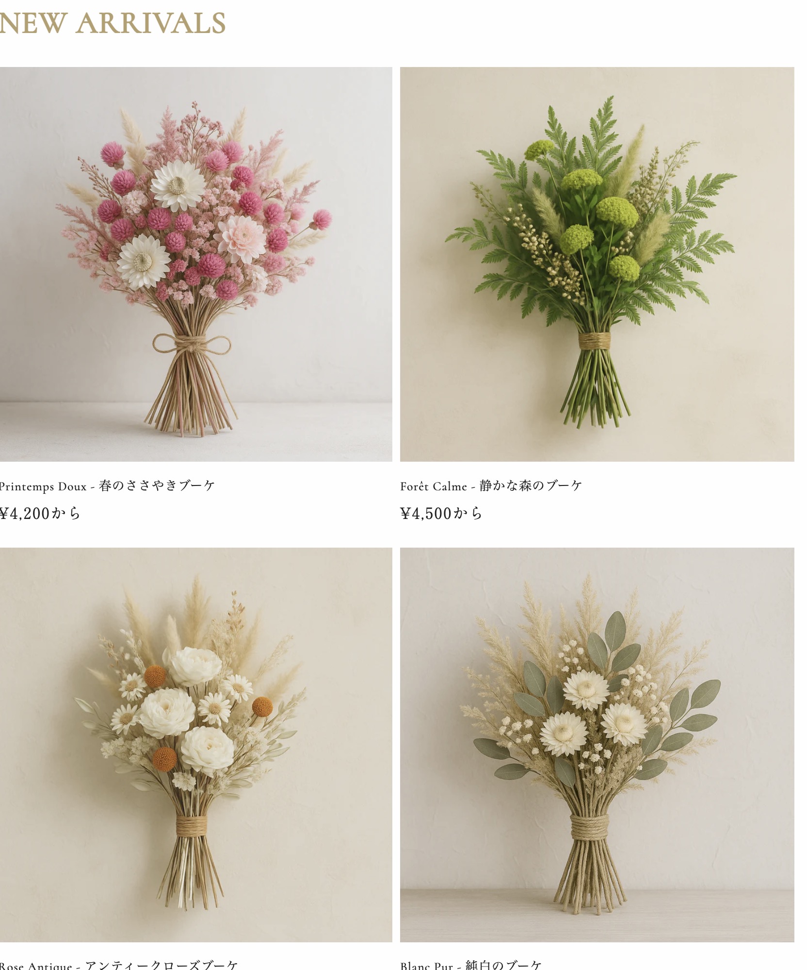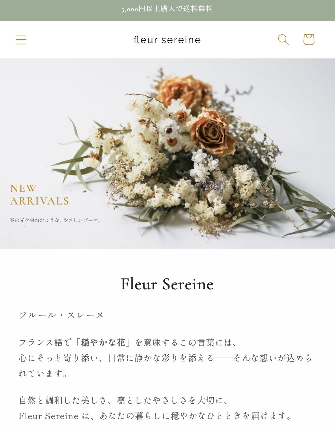 ドライフラワーを中心としたオンラインショップとして制作。商品の世界観が伝わるデザインと、ユーザーが快適に商品を閲覧できるECサイト構成を意識しました。