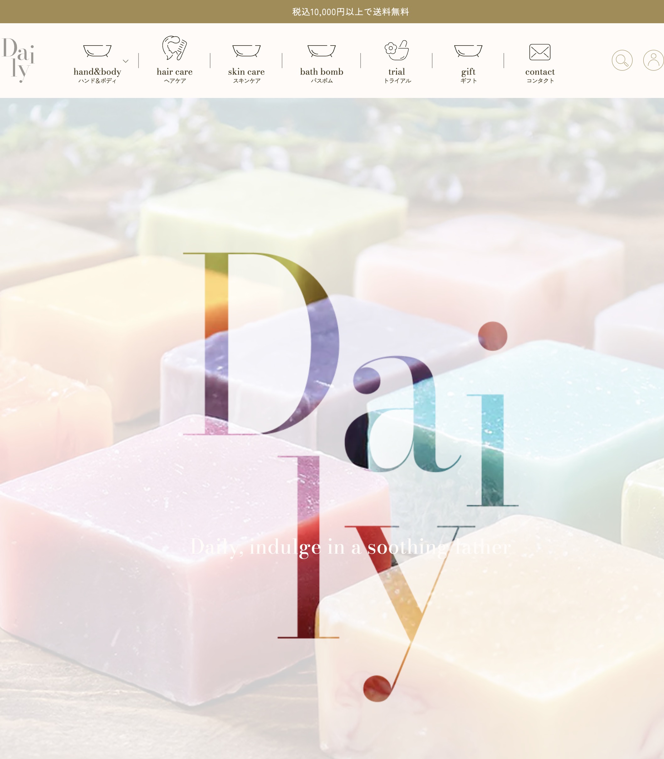 ハンドソープを中心としたECサイトとして制作。商品の世界観が伝わるビジュアル設計と、ユーザーが商品を探しやすいシンプルなUIを意識したオンラインストアです。